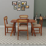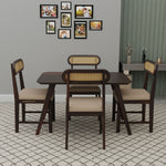 Sheesham Wood 4 Seater Dining Table Set for Home and Kitchen, Cane Furniture, Dining Set