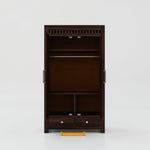 "Elegant wooden wardrobe with sturdy build, spacious shelves, and hanging space. Perfect for keeping clothes organized in style."