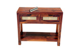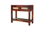 Wooden Rattan Cane Console table With 2 drawer In Honey Finish