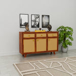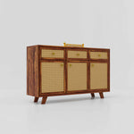Elegant wooden cane sideboard crafted from premium wood with natural cane detailing. Features spacious storage with cabinets and drawers, perfect for organizing dining or living essentials."