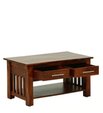 Elegant wooden coffee table with two spacious drawers for easy storage. Its sleek design blends style and functionality, making it a perfect centerpiece for your living room."