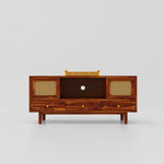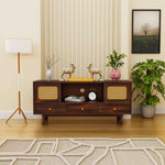 Elegant wooden TV unit with cane detailing and spacious drawer. Adds a rustic charm while offering smart storage for media essentials.