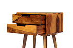 This bedside table is made from strong and durable Sheesham wood. It comes with a drawer and a shelf, giving you space to keep your essentials like books, lamps, or a glass of water. Its natural wood finish adds warmth and style to your bedroom. Perfect for daily use and easy to clean.