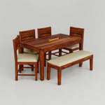 - This Dining Table 6 Seater Set with bench Makes for a Great Addition to Your Home. | The Wooden Dining Set has an Extremely Modern and Contemporary Look that Helps You Set Up a Stylish Dining Space in Your Home.